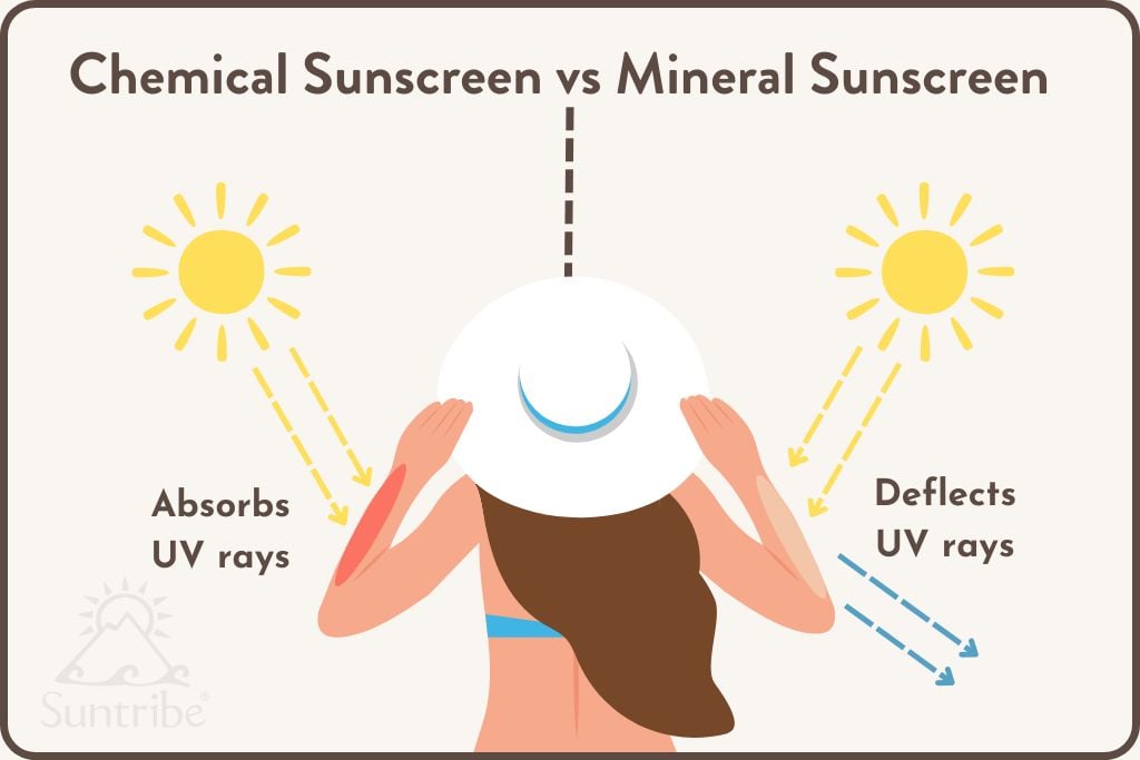 Mineral and chemical sunscreens work in very different ways. Chemical sunscreens reply on UV-filters such as Oxybenzone or Avbenzone and penetrate your skin and bloodstream.